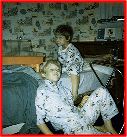 | Author and younger brother home sick with mumps 1973 (see younger brother's puffy cheeks). He is playing with Marx ElectroShot Shooting Gallery--great toy!!Also note Mickey Mouse alarm clock - radio, nice vintage item. | |||||||||||||||||||||||||