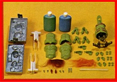 | Galaxon Space Monster Mold Kit No. 6745 Includes: - 1 mold - 2-4oz. bottles of SUPERPLASTIC TM - 1 mixing stick - 1 motorized body with key - 2 unmotorized bodies - 3 sets of decorative accessories - cement |